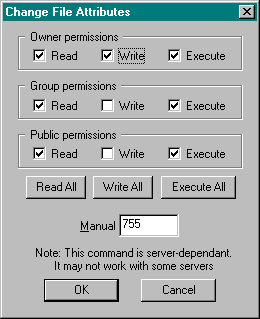 CHMOD 755 = Read, Write, Execute - Read, Execute - Read, Execute